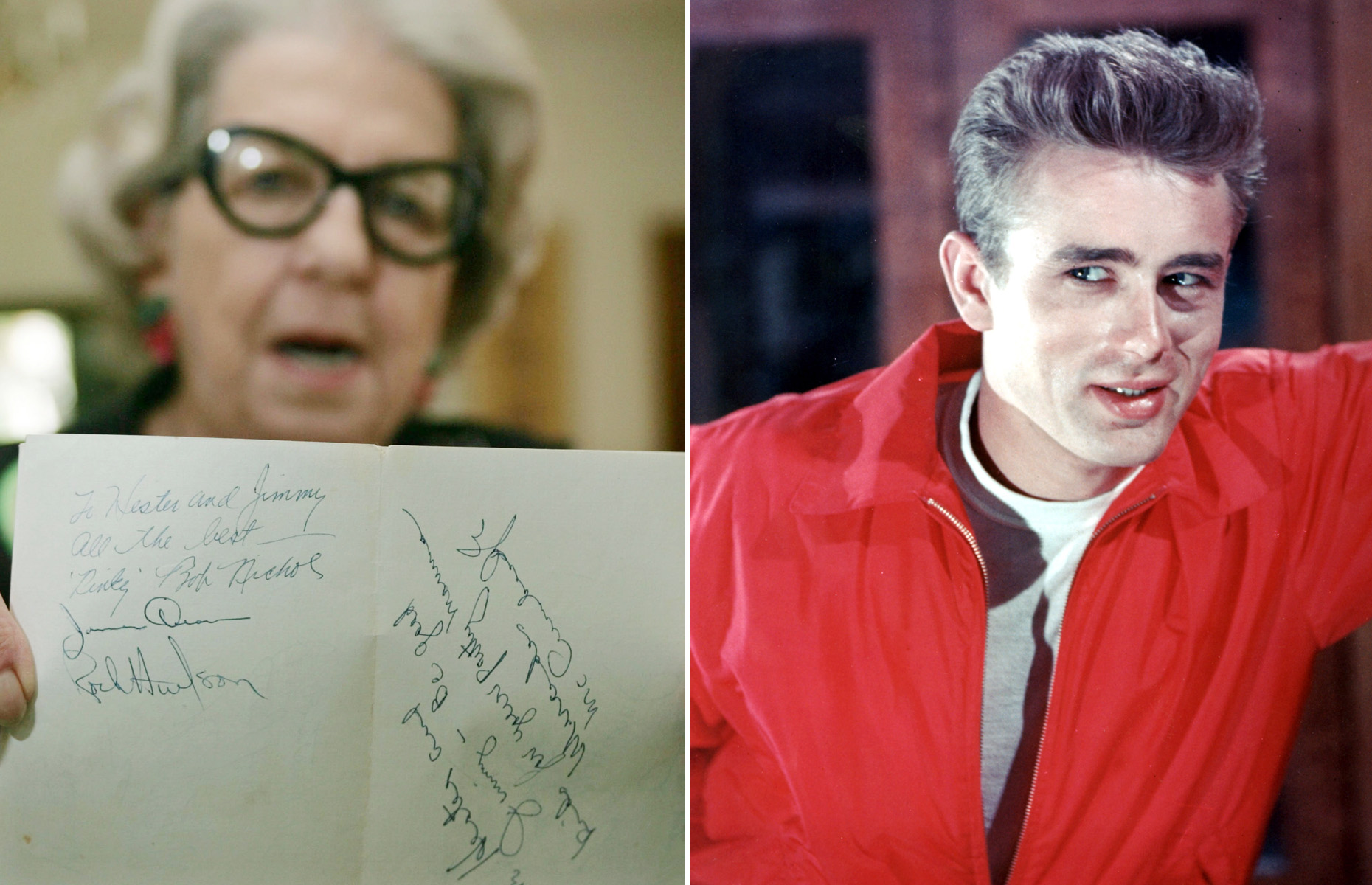 Foto kiri: Jane White memegang tanda tangan yang didapatkannya dari para aktor pada 1955, termasuk James Dean dan Rock Hudson, saat pembuatan film Giant.
