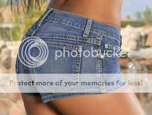 celana nya itu yang mirip hot pants tapi kurang keatas lagi yang hampir sejajar dengan pangkal paha itu loh yang minim banget tapi berbahan jeans atau denim biasanya
